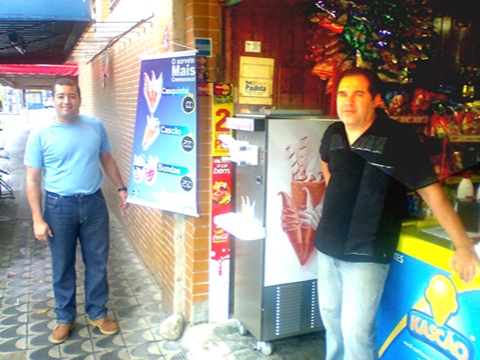 O Sr. Edemilson de São Paulo já conquistou sua independência financeira com uma máquina de sorvete expresso. Comprou uma Máquina Dimac e apostou no Mercado, hoje ele complementa sua renda em seu estabelecimento vendendo sorvete expresso e milk shake.